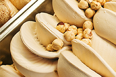 The pastes family is integrated into the gelato, enriching it with natural flavors, color, sweetness and aroma. Each paste creates a unique texture. This series of products offers dairy or fruit pastes, for example, hazelnut paste of pistachio paste for dairy gelatos or strawberry / raspberry for a sorbet gelato.